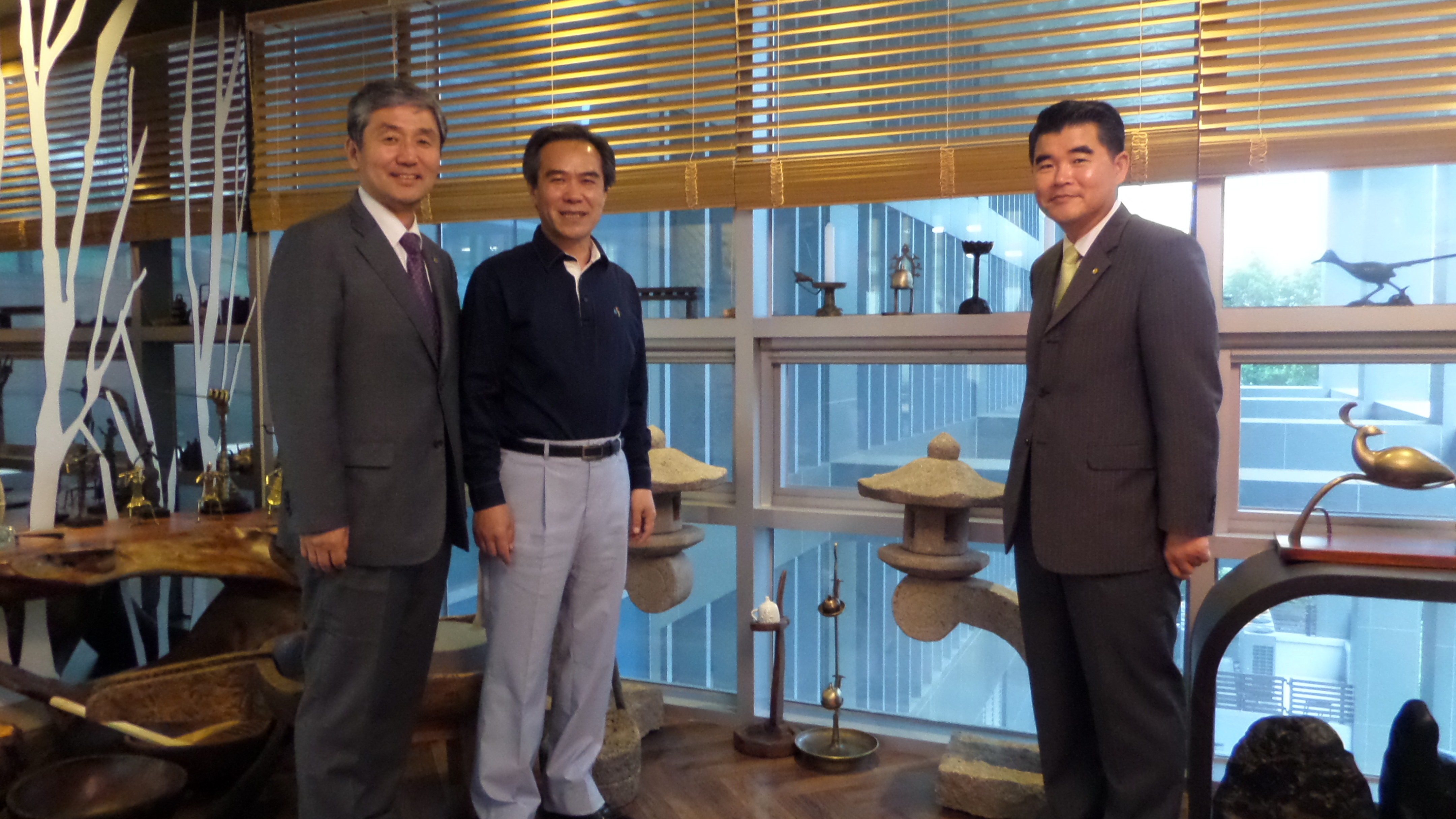 중앙에 김일* 동문 방문대상자 성 함 : 김일* 대표이사( 공학대학원 석사과정 환경공학과 2000년도 졸업 ) 소 속 : ㈜지알테크 방문자 성명 : 김윤기(대학발전본부장), 이강준, 황원복(대학발전본부) 방문일시 : 2015년 6월 9일 13시 30분 방문장소 : ㈜지알테크( 경기도 화성시 동탄면 송리 663-37 ) 자동차 내외장 관리 전문기업인 ㈜지알테크는 1994년 8월 설립한 산업용 자재 유통회사인 태영화학을 모체로 한다. 2001년 4월 ㈜G.R tech를 설립하여 미국 the PaintBull사와 계약을 체결하고 PaintBull System의 한국 판매, 교육에 대한 독점적 권리를 획득하였다. 2001년 7월 수원시 인계동 사옥을 준공하여 교육센터를 열었고, PaintBull 홈페이지를 개설하였다. 2003년 10월에는 국내 최초로 자동차용 광촉매 코팅제를 개발, 시판하였다. 사업 초기부터 자동차 관련 후진양성을 위한 교육부분에 관심이 많아 2001년 9월 신성대학을 시작으로 송원대학, 정수기능대, 대림대학, 신흥대학, 삼육대학, 화성폴리텍 대학, 신진자동차고등학교 등 자동차관련 교육기관과의 산학협력 및 실무교육 위탁사업으로 협력관계를 유지하였고, 전국 전동차학과 교수의 외장관리 연수 등 교원연수도 맡아서 이어오고 있다. 사업의 확장을 위하여 2004년 4월 스피스헥커 대리점 지정, 일본 MG사와 독점판매권 계약, 2007년 11월 일본 AQTEC과 독점계약, 2009년 3월 홀란드 골드드레곤사와 총판 제휴 및 인력,기술,교육에 관한 협약을 하였고, SK글로벌 전문가 교육, 전국자동차 광택 경진대회 개최, 전국자동차 외장관리 광택경연대회 등 다양한 활동으로 2010년 8월 창업경영인 대상을 수상하였다. 2011년 1월에는 최첨단 고급차량 썬팅용 V-KOOL 마스터 프랜차이즈와 국내공급 계약을 하였고, 2013년에 100호 점을 돌파하였다. ‘CARUP’이라는 브랜드로 광택제, 세척제, 방향제 등 다종다양의 자동차 용품을 국내시장에 공급하고 있으며, 현대자동차의 ‘블루핸드’와 기아의 ‘오토큐’ 센타에도 자동차 관리용품을 공급하고 있다. 2008년 6월에는 수원고색동 수원산업단지에 사옥을 신축하여 이전하면서 트레이닝 아카데미를 열었고, 자사 제품의 생산을 위한 공장을 오산에 보유하고 있다. 사세확장에 따라 2013년 3월에 동탄산업단지에 사옥을 신축하여 확장, 이전하였다. 현재 동탄 사옥에는 각종 보세물품의 보관, 배송을 위한 물류공간과 교육과 홍보를 겸한 스튜디오, 자동차 튜닝공간, 김동은 프로레이서를 포함한 레이싱 팀 등이 입주해 있다. 김일* 동문은 2000년에 공학대학원 환경공학과 석사과정, 2003년에는 CKO과정 3기, 2008년도에는 공공정책대학원 부동산최고위과정을 졸업한 만학도로서 석사과정에서는 원우회 회장으로서 봉사하였다. 각종 모임을 성실하게 주도적으로 이끌어가는 타입으로 지인들의 신망이 높다. 아울러, 새로운 분야에 끊임없이 도전하고 변화를 추구하는 속에서도 성실하게 사업을 이끌어오고 있어, 향후 최고의 종합 자동차 관리그룹으로 성장하려는 꿈을 키우고 있다.