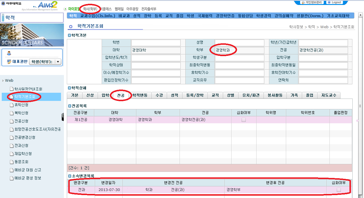 [학부] 2016-2학기 전과 확정 알림 및 학사안내