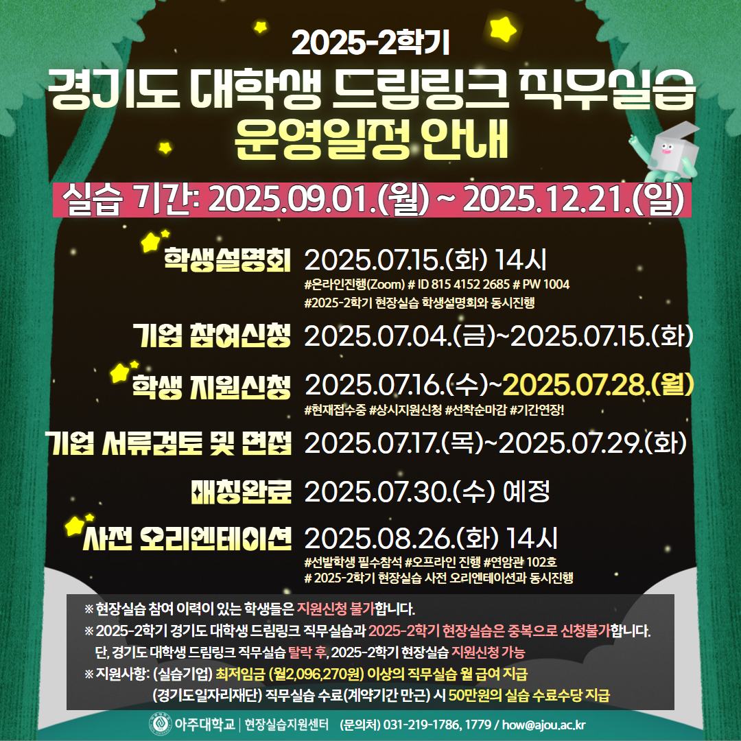 [😳오늘마감] 2025-2학기 경기도 대학생 드림링크 직무실습 운영 일정안내(★학생 지원신청 2025.07.16.(수)~)